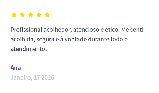 Clique no botão do WhstsApp, informe os motivos da busca por atendimento e esclareça eventuais dúvidas. Após definirmos um dia e horário exclusivo para você, basta fazer o pagamento e enviar o comprovante para o mesmo WhatsApp utilizado no agendamento.